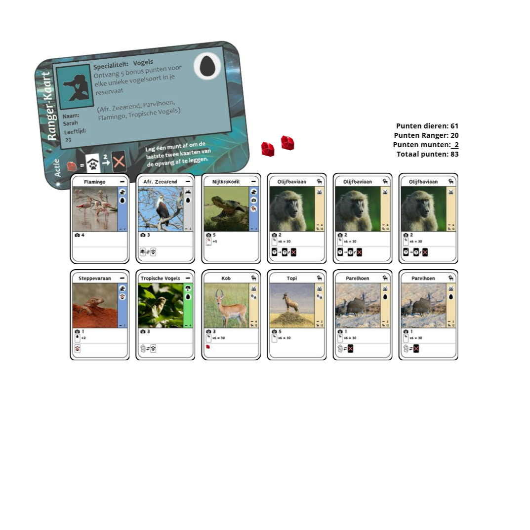 Met 80 unieke dierkaarten is geen spel hetzelfde. Speel slim en gebruik de speciale acties van de dieren om je strategie te versterken. Elk dier heeft zijn eigen mogelijkheden en eigenschappen die je parkscore bepalen.